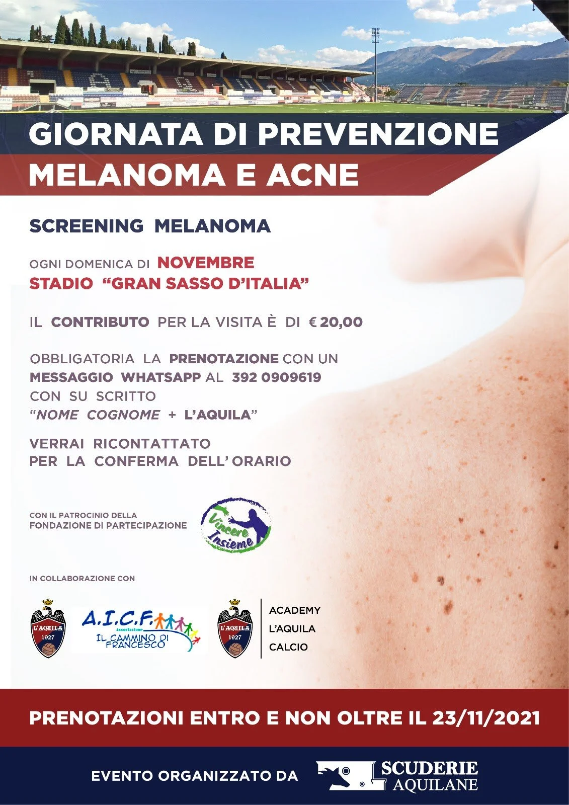 Scuderie Aquilane, in collaborazione con L'Aquila 1927, A.I.C.F. Onlus e Academy L'Aquila Calcio e con il patrocinio di Vincere Insieme, ha organizzato una nuova giornata di prevenzione, riservato al controllo melanoma ed acne, sabato 4 dicembre 2021 presso lo Stadio "Gran Sasso".